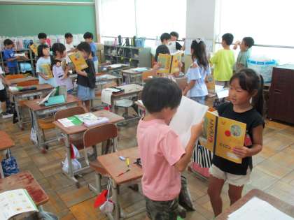 それぞれ楽しい文を作り、友だちと楽しそうに交流していました。