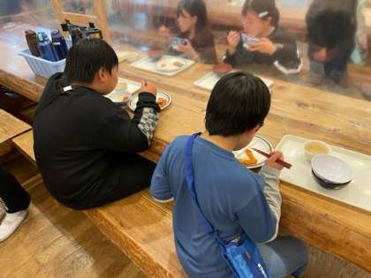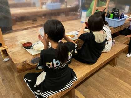 入浴をすませ、夕食をいただきました。オリエンテーリングで活動したあとのご飯は格別においしかったです!