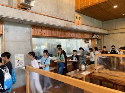 午前の活動、滝ハイクにむけて、しっかり食べておきます!
