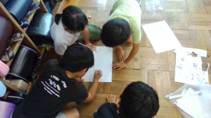 3年1組は、2回目の地域の方とのふれあいに向けて、準備中です。1回目にしたことを活かして、「今度はもう少し大きい声で説明しよう」「歩けない人も楽しめるものにしよう」といろいろ考えながら進めています。楽しんでもらえるといいですね。