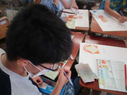 物語を読んで自分の想像した絵をこれまで学習してきた表現技法をつかって仕上げています。