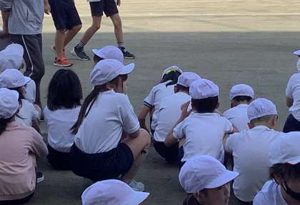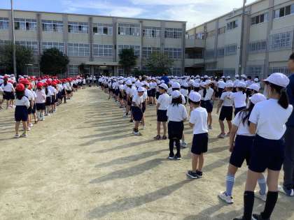 全校で集まって、開閉会式の練習や、準備運動(全校ダンス)の練習をしました。