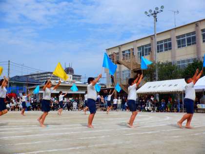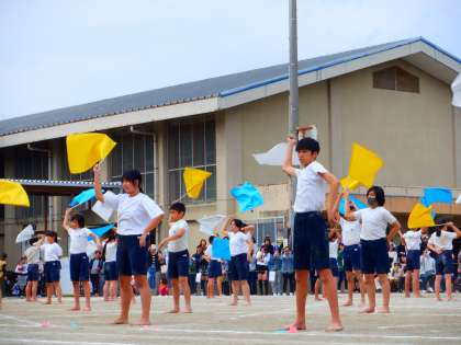 旗の音が一つになり,6年生の絆が一つになった瞬間。