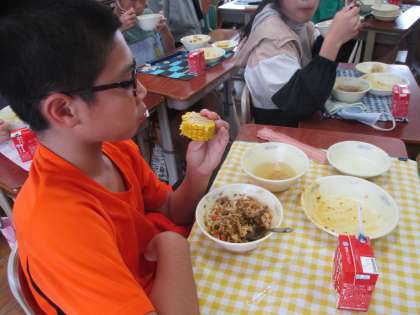 和風ドライカレーは,温かいご飯と混ぜてあっという間に完食している子が多くいました。「カットコーンも,もう小学校で食べるのは最後かなー」とつぶやきながら,味わって食べていました。