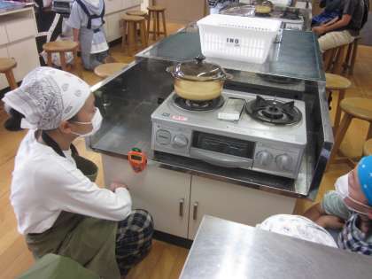 お米と水の様子を透明の鍋の外から観察します。