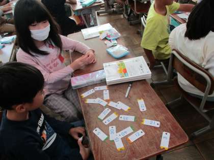 覚えた九九を使って、九九カード遊びをしました。