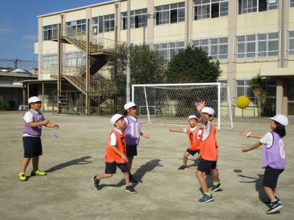 体育では、パスゲームを楽しんでいます。