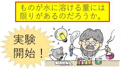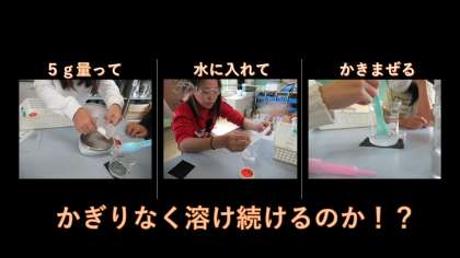 水に食塩やミョウバンを溶かしていき、溶ける量には限りがあるのかどうかを実験しました。