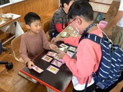 お店屋さんとお客さんに分かれて、1000円札や500円玉、100円玉を使って、お釣りに気を付けながら買い物をしました。