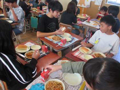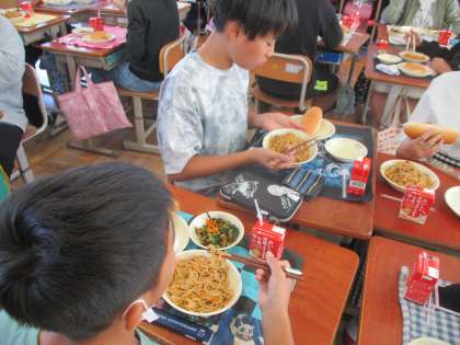 調理員さんの愛情のこもった,たっぷりの『ソースやきそば』はあっという間になくなってしまいました。モリモリ食べて,元気な体で,毎日を楽しく過ごしたいね!!