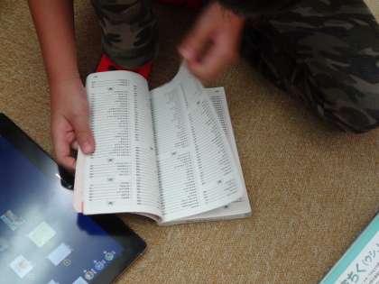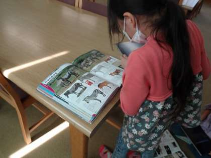 英語科では、オリジナル絵本を紹介するために、自分の好きな動物の絵や写真を探しに行きました。「索引」も使って、動物を見つけることができていました。