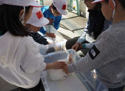遠足に行ってきました!午前中は、なかよし教室でモルモットやうさぎに触れることができました。子どもたちは、優しく撫でて「毛がふわふわ〜」としっかり観察をしていました。モルモットやうさぎのことも詳しく知れました。