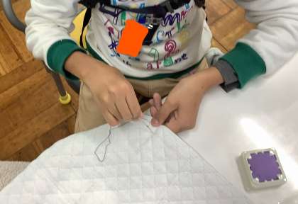 裁縫をがんばっています くすのき学級