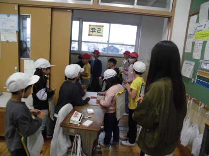 12日(火)の2・3時間目は、縦割りゲーム大会でした。縦割りグループで6年生を中心に考えて準備したゲームを、小グループでまわっていきました。ペットボトルボーリングやキャップとばし、魚釣りなど、簡単だけど楽しいゲームを子どもたちはとても楽しんでいました。