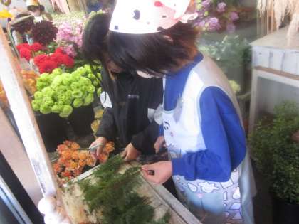 花屋さんでスワッグを作らせてもらったり、酒屋さんで酒粕を包装させてもらったり,はんこ屋さんでハンコを作らせてもらったり…。それぞれの店舗で子どもたちの仕事を工夫していただき、充実した時間を過ごすことができました。商店会のあたたかいみなさんにお世話になり,子どもたちは「もっと長い時間やりたかった」「明日もしたい」「将来、〜屋さんをやってみたい」などの感想を口々に話していました。