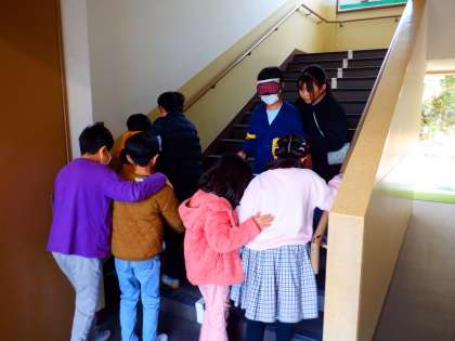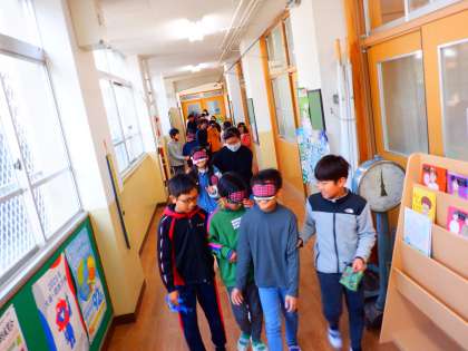 4年 総合『やさしいまちづくり』の学習で、アイマスク体験をしました。