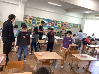 読聞かせの後は、冬休みのことについて英語できいたりこたえたりしました。