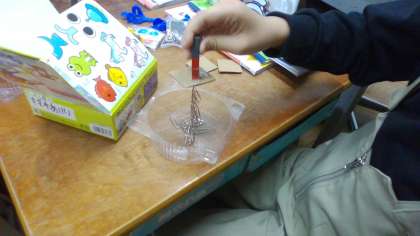 理科「じしゃくのふしぎ」の学習で,じしゃくが鉄を引き付ける力を調べました。