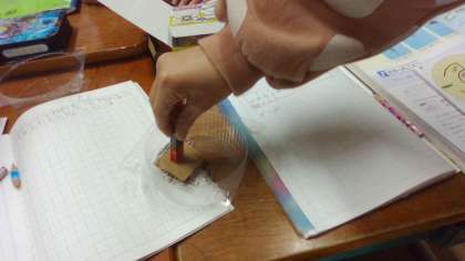 じしゃくとクリップの間に段ボールをはさんでも,クリップを持ち上げられるか,実験をしました。