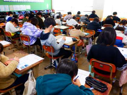 算数のテストに取り組んでいる様子です。学習したことに真剣に向き合う姿がすてきです。