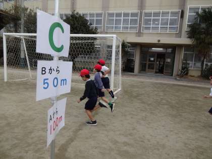持久走記録会に向けて頑張っています。応援の声掛けもとっても素敵です。