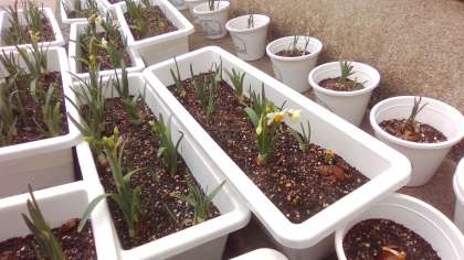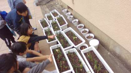 10月の下旬に植えた,「人権の花」のすいせんが,花を咲かせました。