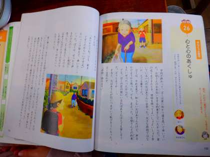 道徳科で「心と心のあくしゅ」というお話を読み学習をしました。見守ることも親切の一つであることに気づき、思いやりの心をもって親切にすることについて考えました。