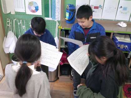 学習発表会に向けて、台本を準備し、読み合わせや文章を修正しています。