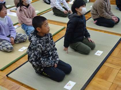 本日、茶道体験がありました。外部から講師の先生に来ていただいて作法を教えてもらいました。最初に茶道の歴史や、道具の説明を聞きました。みんな真剣に聞いています。