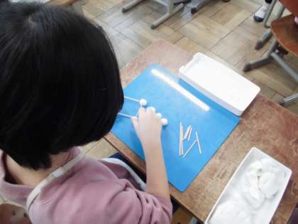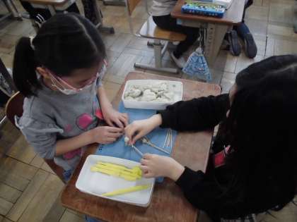 いよいよはこの形も終盤です。ひごと粘土玉をつかって箱を作りました。何センチのひごが何本で・・・粘土玉が何個・・・と頭と手を一生懸命使いました。