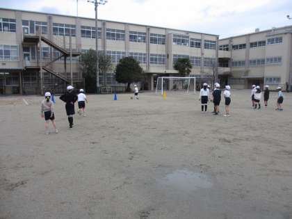 雨が上がり、少し肌寒かったですが、サッカーをしました。パス回しやドリブル、シュートの仕方を学び、実践していました。次の時間からのゲームをすごく楽しみに練習していました。