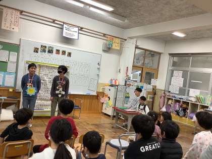 第二部では、祥豊小学校の皆さんと、クイズやゲームなどで楽しんだ後、