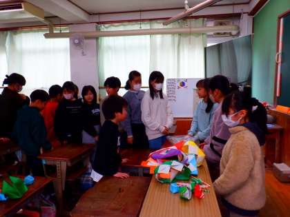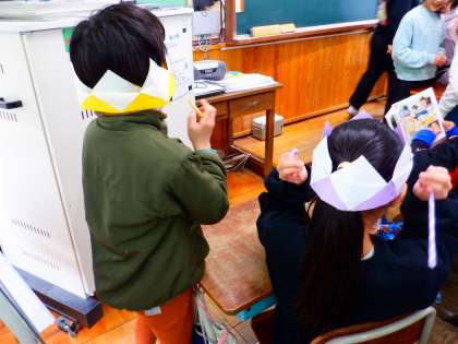 係活動で「くじ係」さんが、くじ引きのイベントをしてくれました。景品の折り紙も工夫して作られていました。
