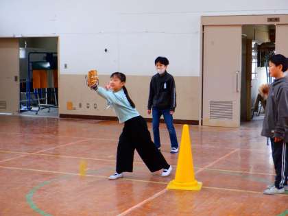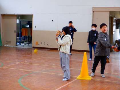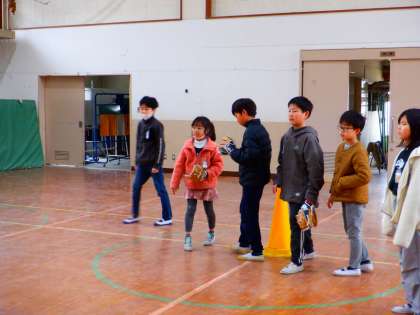 希望者がたくさんいましたが、子どもたちは、何回も列に並んでキャッチボールを楽しんでいました。
