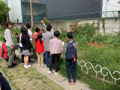 話し合った後、花壇にまだ行ったことのない1年生もいるので、実際に花壇を見にいきました。