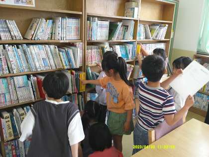 本が分類されていることを知ったうえでクイズに挑戦しました。ラベルをもとに探すことで見つけやすいということに気付くことができました。