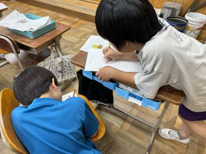 まず自分の頑張ったところを書き、友だちのいいところを見つけました。