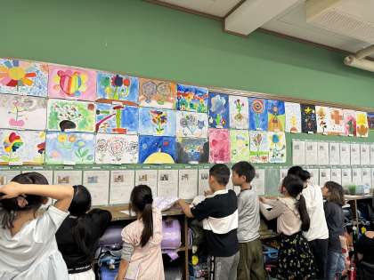 友だちの作品の色使いや発想に目をつけ、いいところをたくさん見つけていました。次は自分もやってみたいという振り返りをしている子もいました。