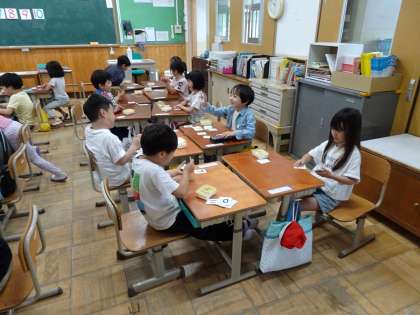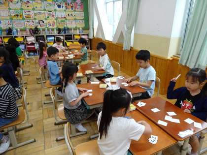 ともだちとカードをだしあって、でたかずのおおきさをくらべることができました。