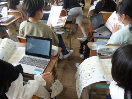 4年生では,社会で47都道府県の名前や位置を学習します。各都道府県の名産品や有名な建物などについて調べ,「都道府県クイズ」を作り,お互いに問題を解きあいました。