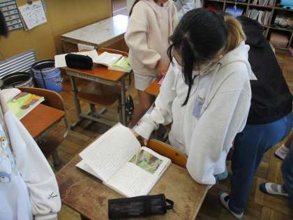 「帰り道」の学習を進める中で、作者の工夫された表現が印象に残った子が多く、「どの言葉が印象に残ってる?」をみんなで交流しました。