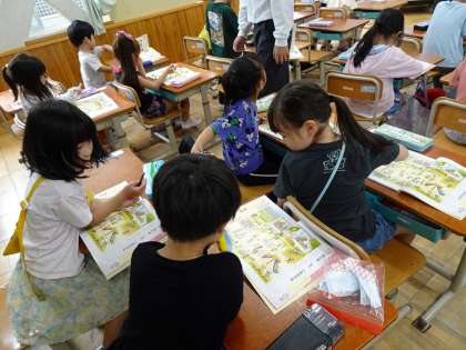 きょうかしょのえをみながら、「これは よくないよね!」とともだちと こうりゅうしました。