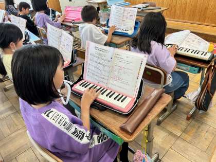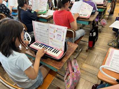 この曲は歌を歌うパートと鍵盤ハーモニカを吹くパートに分かれて演奏します。