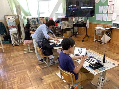 課題を書き終えた児童は,自由課題で好きな字,興味を持った言葉などに取り組んでいます。