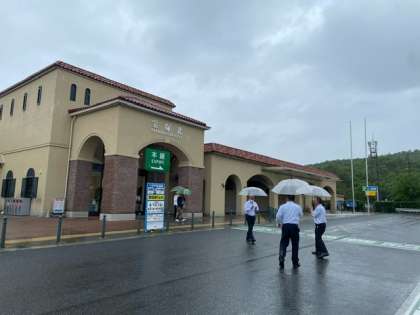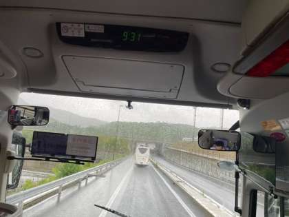 現在、6年生を乗せたバスは宝塚北PAで休憩の後、鶉野飛行場跡へ向けて出発しています。予定より15分遅れです。