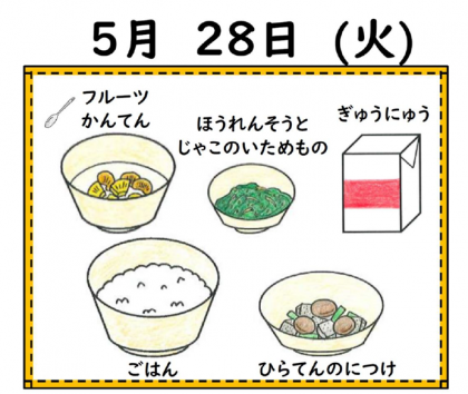 きょうの きゅうしょくに 「フルーツかんてん」がでました。