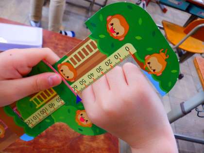 算数科で『長さ』の学習をしています。教科書に付いている「べんりなものさし」を使って、いろいろなものの長さを調べました。