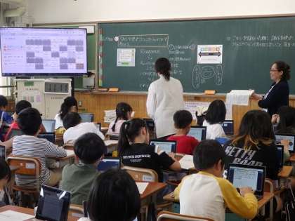 タブレットを使って学級の友だちと交流し、正しい情報の受け取り方や発信の仕方など考えることができました。