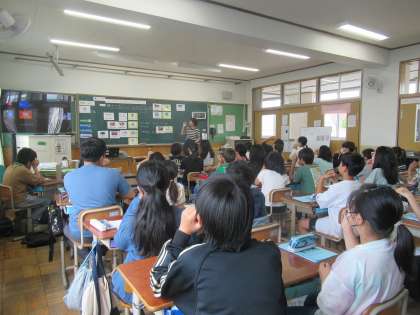 外国語「Welcome to Japan」で日本の行事について、ジェスチャーを付けながら確認をしています。