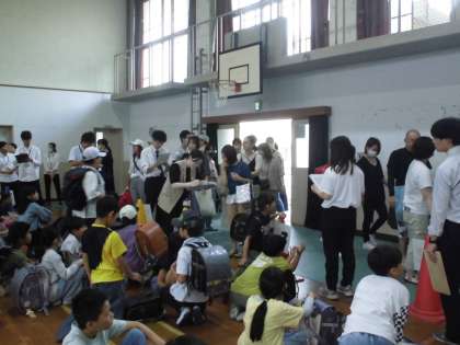 8日の休日参観の後に、引き渡し訓練を実施しました。大きな地震が起こり、体育館に避難した後、保護者の方に迎えに来てもらうという想定でした。ここ数年、体育館での引き渡し訓練は行っていなかったため、子ども達も少し緊張気味でしたが、落ち着いて指示を聞き、無事訓練を終えることができました。参加していただいた保護者の皆様、ご協力ありがとうございました。